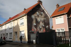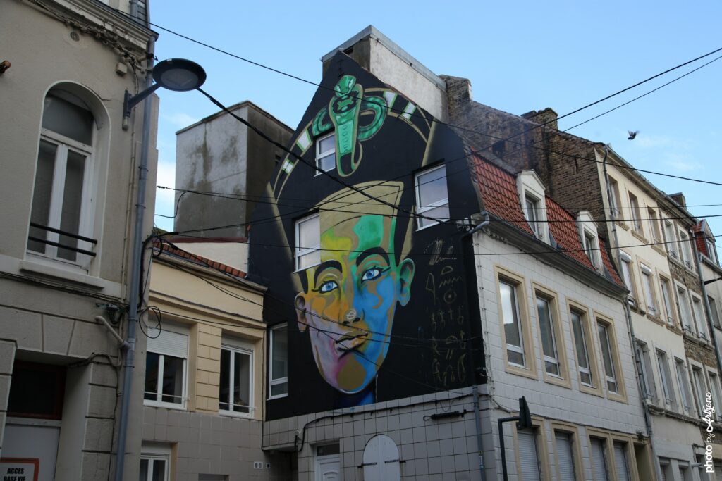 👉 Baladez-vous à votre rythme, laissez-vous guider par les couleurs, les visages et les messages qui habillent murs, pignons, mobilier urbain et même les colonnes de l’Université du Littoral.